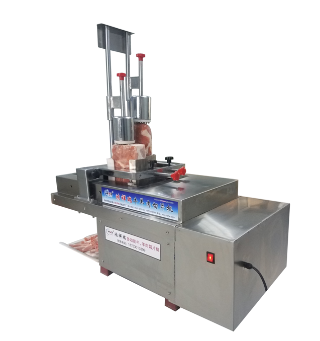 切片效率高: 更換肉卷不停機(jī),每小時100-200斤;更適合切各種不規(guī)則的凍肉;